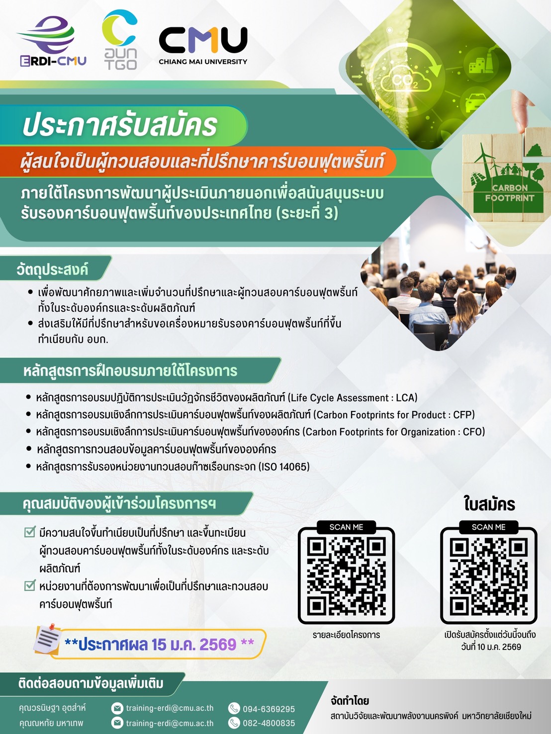 ขอเรียนเชิญผู้สนใจเเป็นผู้ทวนสอบและที่ปรึกษาคาร์บอนฟุตพริ้นท์ ภายใต้