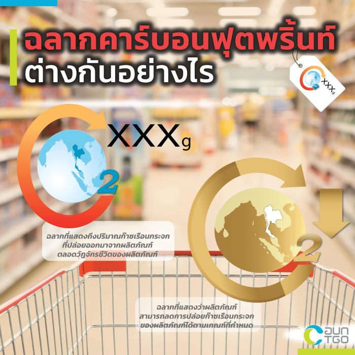 ดังนั้น เวลาเลือกซื้อสินค้าตามห้างสรรพสินค้า ร้านสะดวกซื้อหรือในตลาด โปรดสังเกตเครื่องหมายคาร์บอนฟุตพริ้นท์บนผลิตภัณฑ์ และสามารถค้นหาข้อมูลผลิตภัณฑ์ที่ได้รับการรับรองแล้วได้ที่ เว็บไซต์ thaicarbonlabel.tgo.or.th