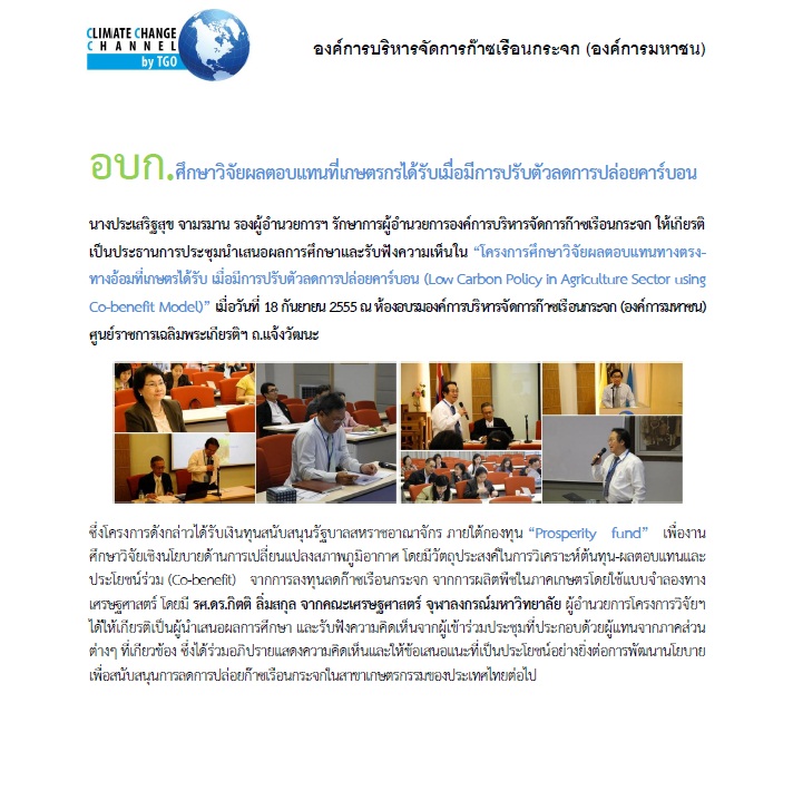 อบก.ศึกษาวิจัยผลตอบแทนที่เกษตรกรได้รับเมื่อมีการปรับตัวลดการปล่อยคาร์บอน