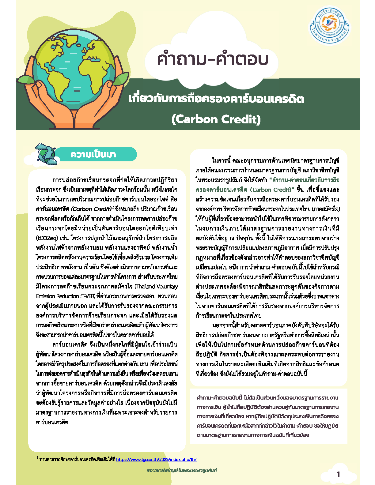 เพื่อเป็นแนวทางสำหรับผู้ประกอบการและผู้จัดทำบัญชี ในการลงรายการคาร์บอนเครดิตในงบการเงินอย่างถูกต้องตามมาตรฐานการบัญชี